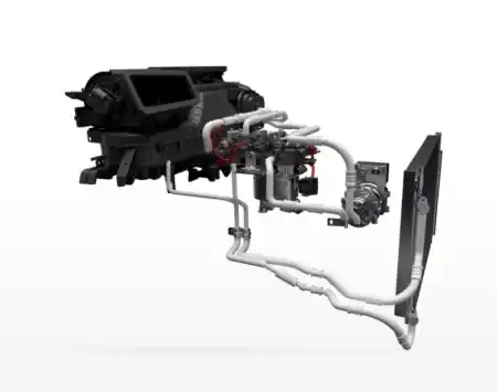 temperaturområde. Systemet utnytter restvarme fra omgivelsene, drivverket, kupeen og